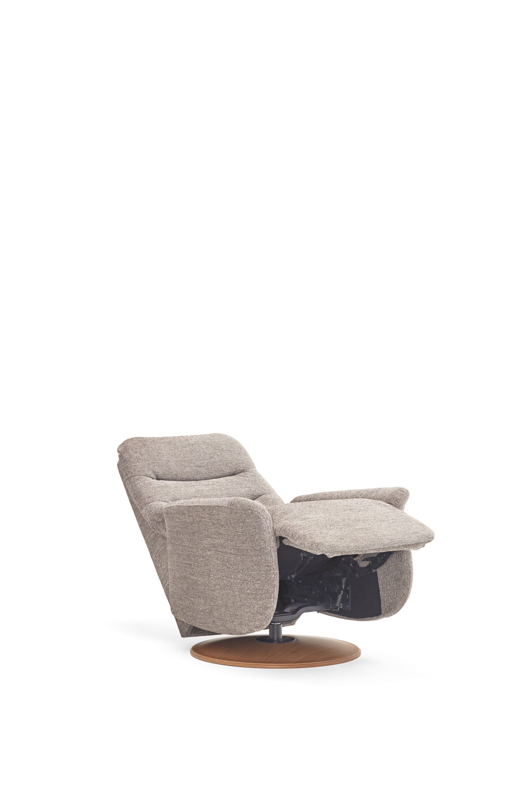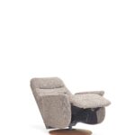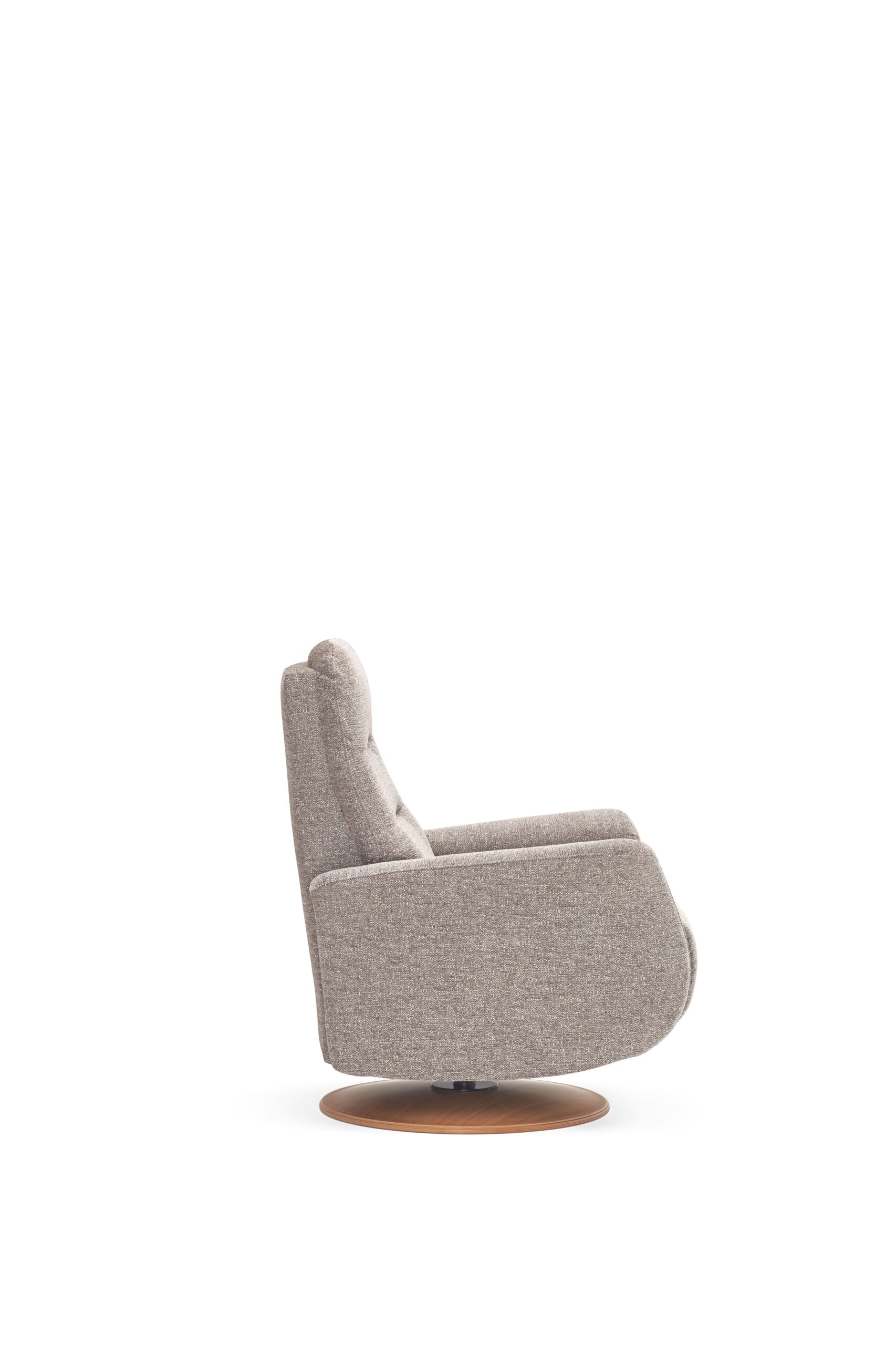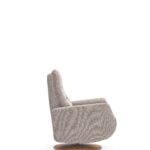 Sillón giratorio con diferentes opciones de base en estrella o disco, disponible en madera con distintos acabados. Destaca por la comodidad de su acolchado y la sinuosidad de sus brazos.