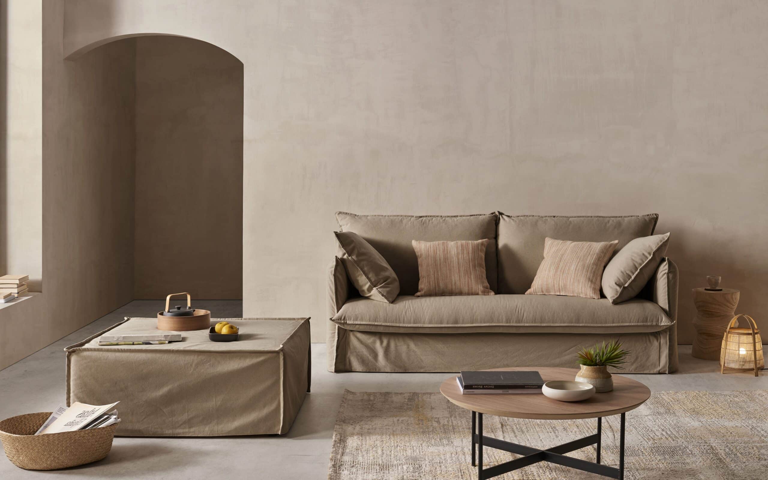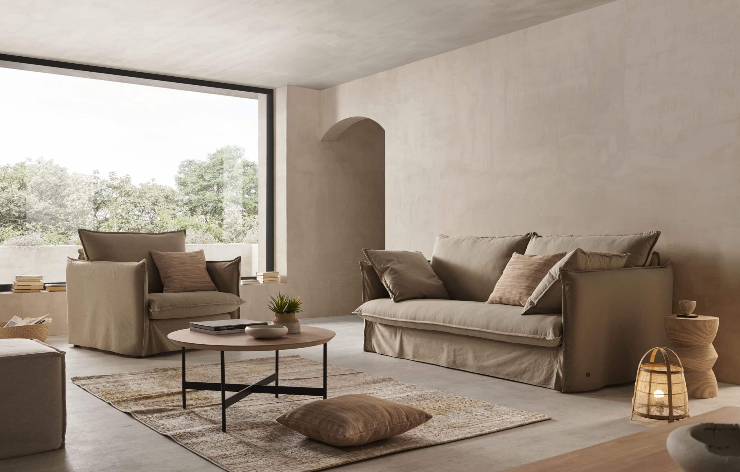 Almohadas totalmente desenfundables. Almohadas de asiento de espuma 30 kg/m³ suave PUR, recubiertas de fibra de poliéster termoligada. Almohadas de respaldo con relleno 100% de fibra hueca siliconada.